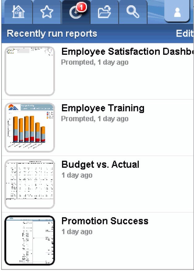 Auch die mittels Cognos-Workspace erstellten Dasboards sind auf den mobilen Endgeräten verfügbar. Die Unterstützung von apple-Geräten basiert nicht auf einer native iOS-App sondern ist webbasiert (HTML 5), mit den bekannten Nachteilen bzgl. „User Experience“.