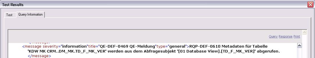 <message severity="information"title="QE-DEF-0469 QE-Meldung"type="general">RQP-DEF-0610 Metadaten für Tabelle 'KDW MK CRM..DM_MK.TD_F_MK_VER' werden aus dem Abfragesubjekt '[01 Database View].[TD_F_MK_VER]' abgerufen. </message>